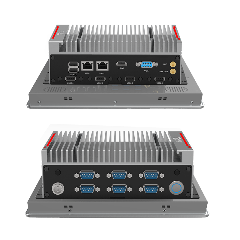 外觀設計:鋁合金一體成型,工藝精細,科技時尚低功耗:英特爾®賽揚®J1900 板載處理器,TDP 10W穩定可靠:純工業無風扇設計,大面積鋁鰭散熱,箱體材質可抗接觸式6Kv強電磁干擾;液晶屏接觸處加強型密封膠圈設計,面板防水防撞擊接口豐富:2*LAN(Intel),6*COM,1*USB3.0,5*USB2.0,1*HDMI,1*VGA,1*MIC In, 1*Line