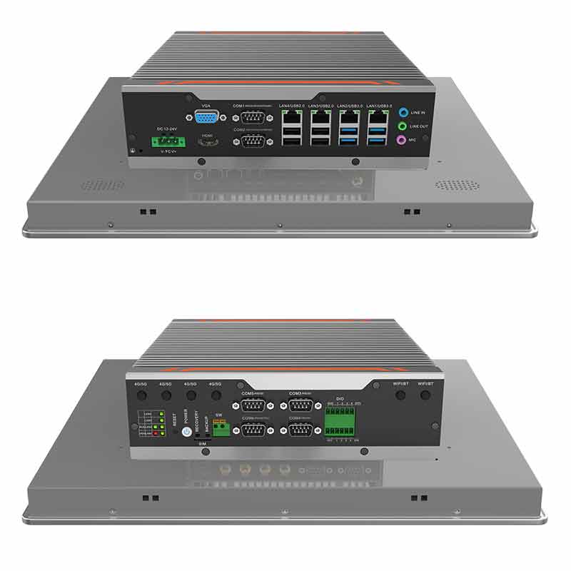 低功耗:支持65W及以下6/7/8/9 代1151 Intel Core i7/i5/i3 系列處理器外觀時尚:鋁合金一體成型,結構緊湊小巧,工藝精細,科技時尚穩定可靠:純工業設計,優良的散熱結構,全密封鋁合金箱體,大面積鋁鰭散熱,機箱可抗接觸式6KV強電磁干擾,標配DC12V輸入,可選DC12V-24V寬壓輸入接口豐富: 4*LAN(Intel),6*COM,8*GPIO(4*GPI,4*GPO),4*USB3.0+4*USB2.0,1*VGA,1*HDMI,1*遠程開關,1*一鍵還原,1*一鍵備份,1*SIM槽,1*LINE IN,1*LINE OUT,1*MIC,1*2.5寸硬盤位,1*M.2(KEY-M,2280,SATA SDD),1*M.2(KEY-B,3042/3052,USB3.0信號 支持4G/5G模塊),1*MINI PCIE(全高,PCIE+USB2信號,支持WiFi/BT)
